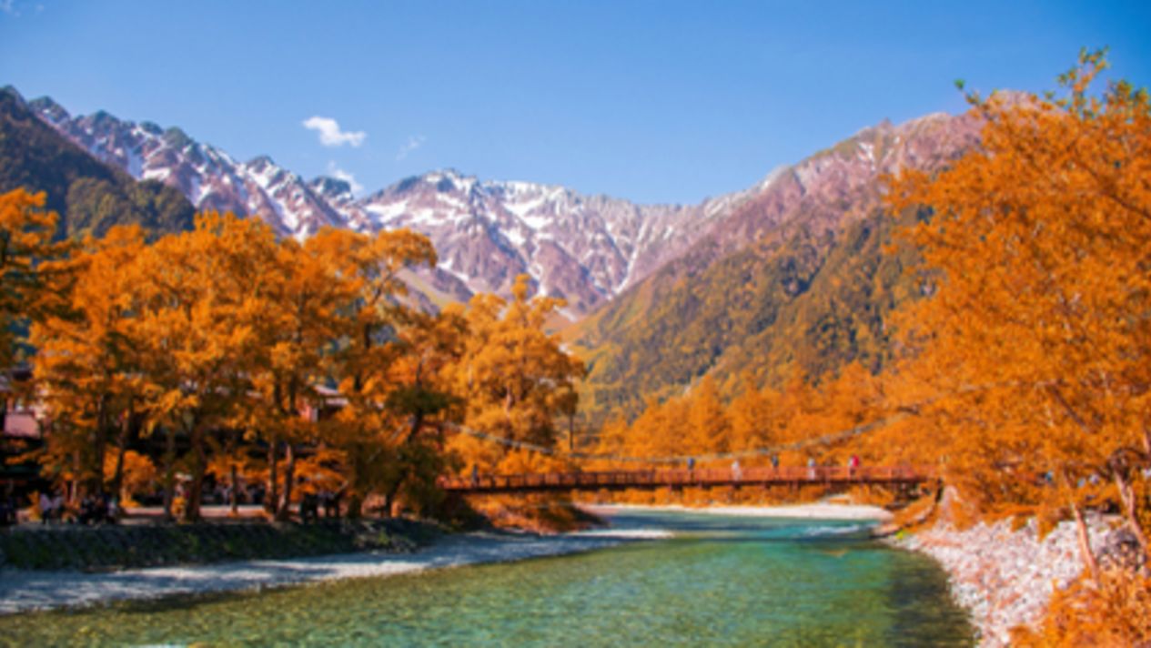 Kamikochi là một phần của công viên quốc gia Chubu-Sangaku ở Nagano. Được mệnh danh là dãy Alps của Nhật Bản, Kamikochi nổi tiếng với vẻ đẹp thiên nhiên hoang sơ cùng nhiều hồ nước và những ngọn núi tuyệt đẹp. Vào thu, cây cối bắt đầu chuyển sang màu vàng, tạo nên một cảnh quan đẹp mắt, thu hút nhiều du khách đến tham quan và chụp ảnh.