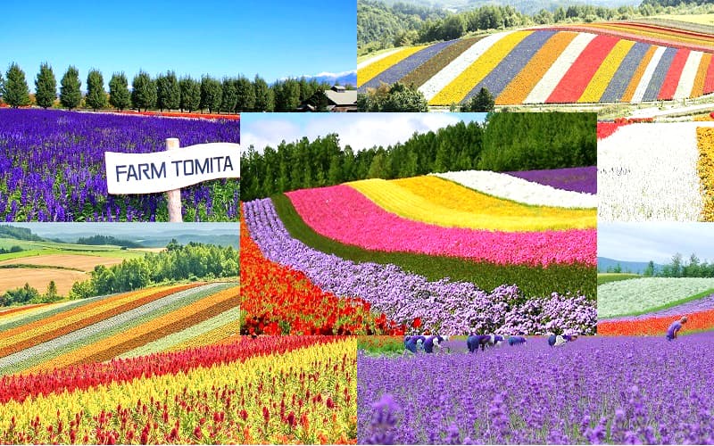 Nông trang Tomita, nơi những thảm hoa được trồng theo phong cách cầu vồng là địa điểm thu hút khách du lịch đến nhiều nhất. Các loài hoa oải hương mọc bao phủ cả triền đồi. Đứng từ phía núi Tokachi nhìn xuống, du khách sẽ không khỏi choáng ngợp trước vẻ đẹp của loài hoa màu tím này.