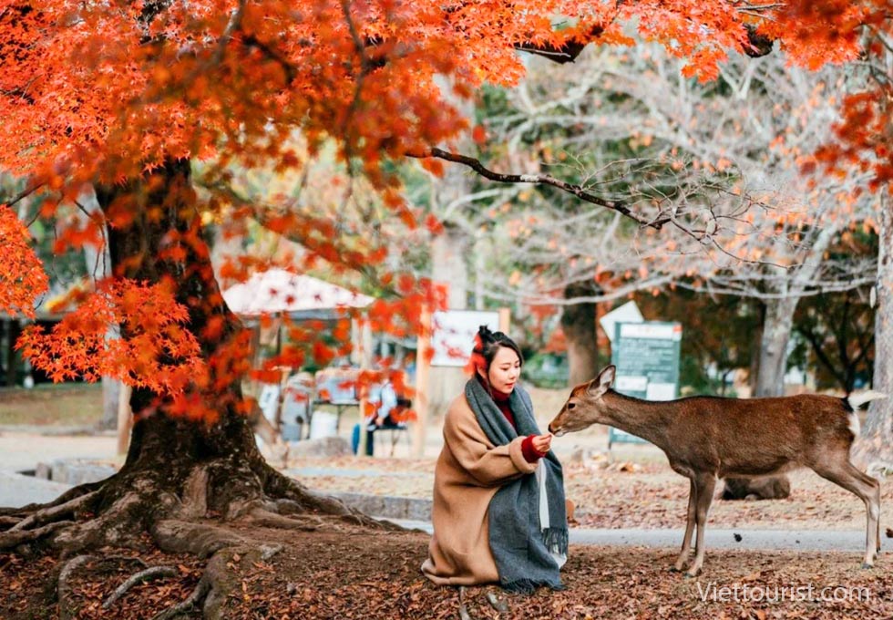 Một hình ảnh khá vui nhộn tại công viên Nara chính là cảnh cả một đàn nai chạy theo du khách với gói bánh trên tay. Những chú nai tại công viên Nara đã trở thành một biểu tượng của cố đô Nara.