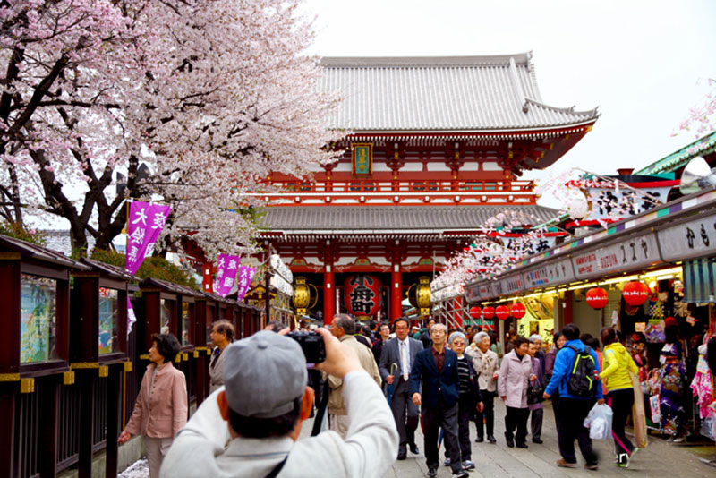 Nếu đến Nhật Bản trong dịp Tết, bạn nên ghé chùa Asakusa (hay còn gọi là chùa Sensoji) ở thủ đô Tokyo. Được xây dựng vào năm 645 để thờ phụng Phật Quan Âm. Đây là ngôi chùa cổ nhất Tokyo và là điểm thu hút rất đông người dân và du khách, đặc biệt là đến để cầu nguyện vào đêm giao thừa và những ngày đầu năm mới. Chùa Sensoji có 2 cổng chính được nối với nhau bởi con phố mua sắm Nakamise. Đến đây là dịp để bạn “săn” những món đồ lưu niệm độc đáo và thưởng thức các món ăn truyền thống của địa phương được bán tại các quầy ở dọc con phố.