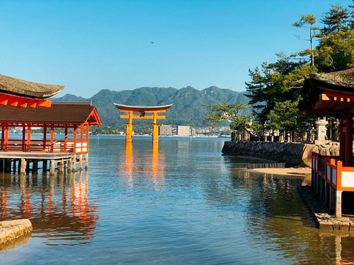 Chỉ mất 25 phút đi xe điện từ Hiroshima và 10 phút đi thuyền từ Miyajima-guchi sẽ đưa bạn đến Đảo Miyajima và Đền Itsukushima : là nơi mà bất cứ du khách nào cũng nên một lần đến thăm. Toàn bộ hòn đảo với diện tích 30km2 được chính phủ công nhận là Di tích Lịch sử và Danh lam thắng cảnh đặc biệt. Các đền thờ được nối với nhau bằng hành lang trải khắp mặt nước và do đó, khi thủy triều lên thì toàn bộ cấu trúc xuất hiện và nổi trên biển, cổng torii làm từ phiến gỗ đỏ mọc trước biển được xem là cột mốc của ngôi đền. Nhiều lễ hội đầy màu sắc được tổ chức ở đây suốt cả năm nhưng ấn tượng nhất là Lễ hội Kangen-sai vào tháng Bảy hoặc tháng Tám. Trong lễ hội này, vị thần Itsukushima sẽ được đưa lên một chiếc thuyền để bắt đầu cuộc hành trình tham quan các đền thờ khác ở phía đất liền và sau đó sẽ quay trở lại. Thánh nhạc được thực hiện trên các nhạc cụ Nhật Bản cổ xưa.