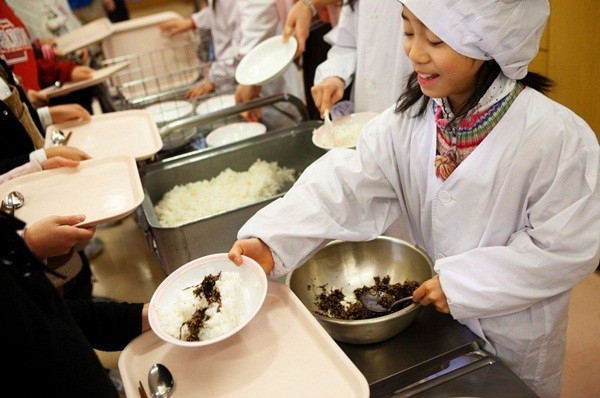 Học sinh Nhật Bản được tự chuẩn bị và phục vụ bữa trưa.