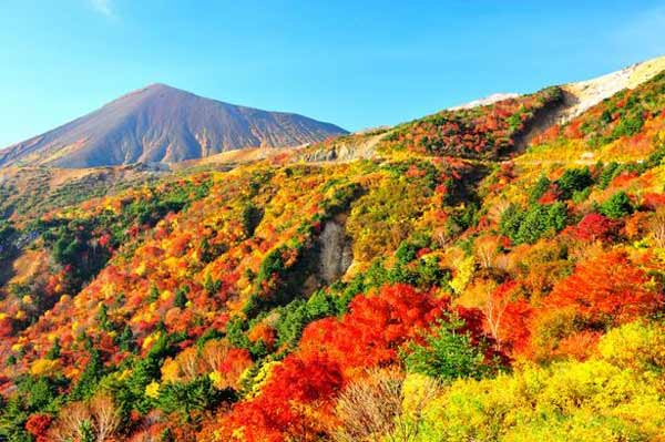 Ở Nhật Bản, thường vào giữa tháng 9 ở Hokkaido – địa phương ở cực bắc nước Nhật – sẽ bắt đầu vào mùa chuyển màu lá đầu tiên, sau đó màu lá đỏ mới dịch chuyển dần đến các địa phương phía nam trong vòng khoảng 50 ngày. Sự thay đổi màu sắc lá diễn ra vào buổi sáng sớm, khi nhiệt độ khoảng 6,7 độ C. Mùa ngắm lá đỏ thường chỉ kéo dài từ 20 đến 25 ngày, và thay đổi theo từng năm.