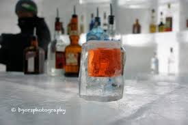 Ly đựng cocktail bằng băng trong làng băng. Ảnh: Internet.
